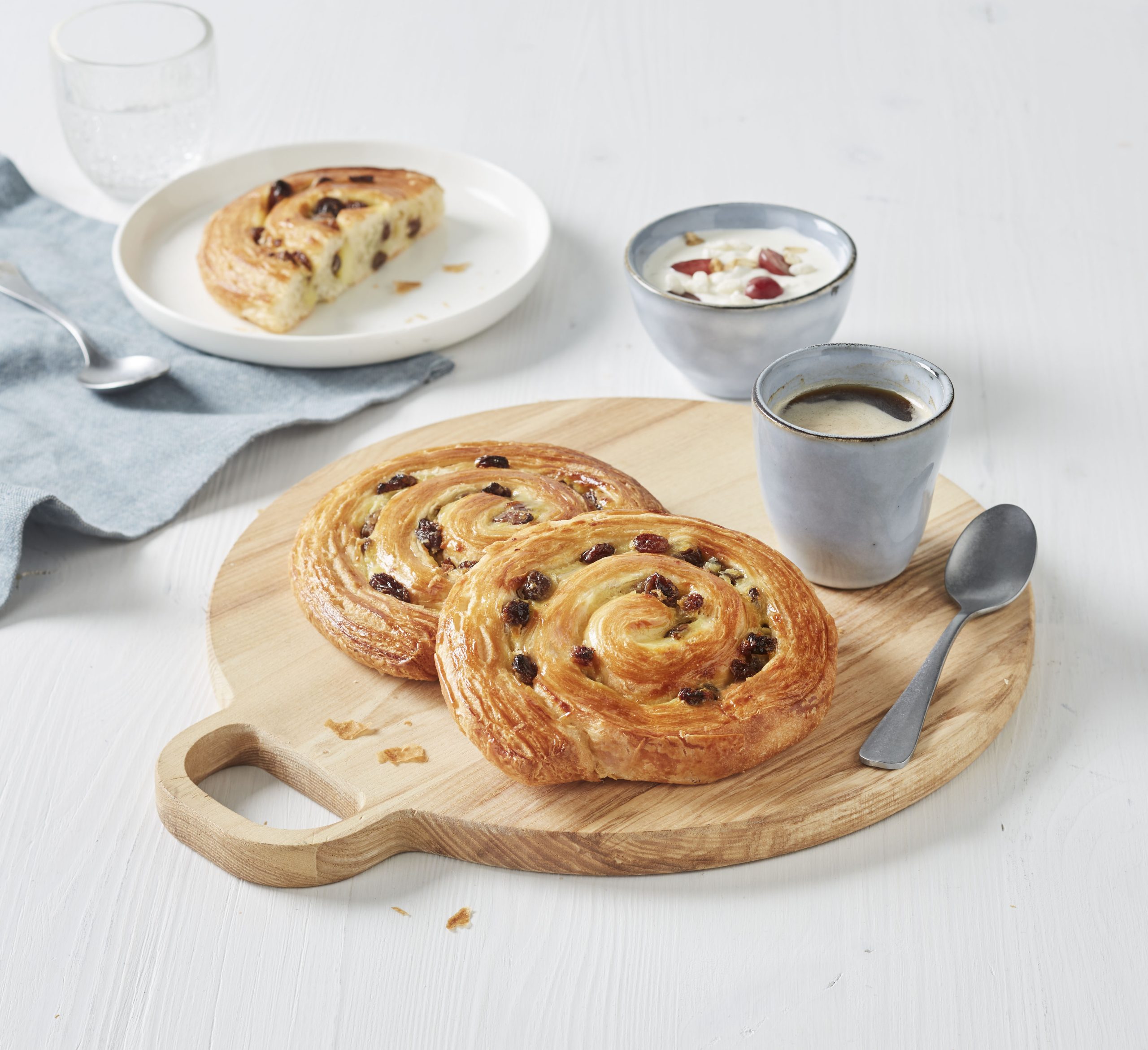 Its soft centre is home to a panoply of naturally sweet raisins steeped in creamy confectioner's custard.